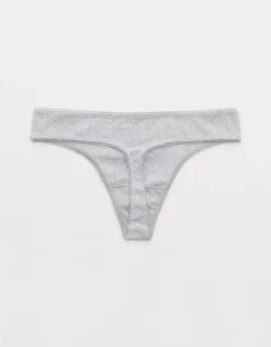 Aerie Superchill Pointelle Thong Underwear Medium Heather Gray
