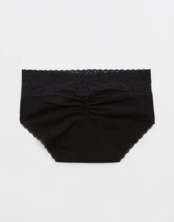 Aerie Superchill Vintage Lace Cotton Boybrief Underwear True Black