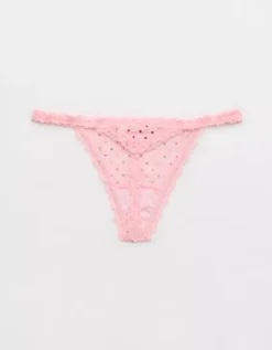 Aerie Show Off Vintage Lace String Thong Underwear Club Pink