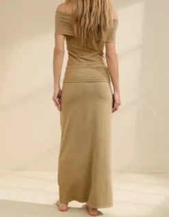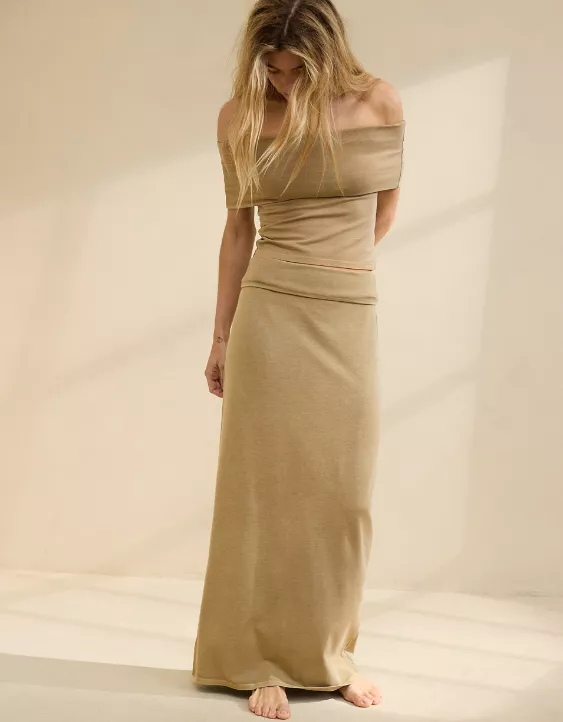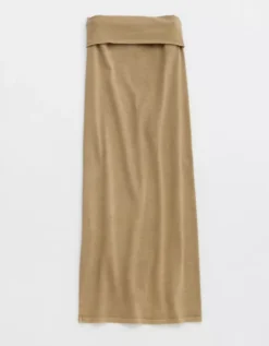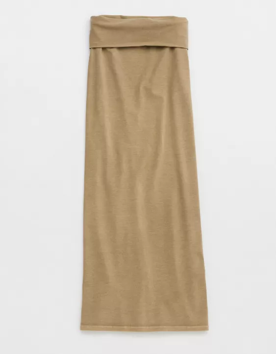 Aerie Chill Up Foldover Maxi Skirt Soft Stone