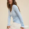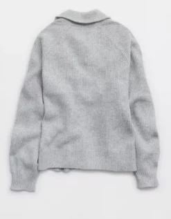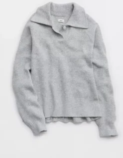 Aerie Classic Quarter Button Sweater Medium Heather Gray