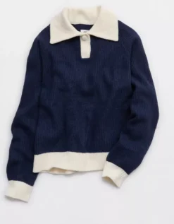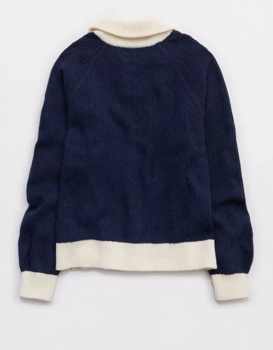 Aerie Classic Quarter Button Sweater Navy
