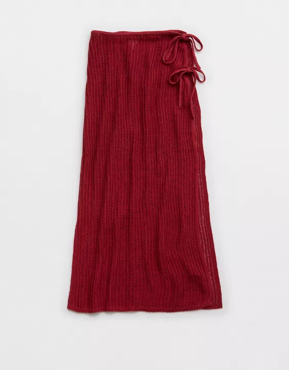 Aerie Crochet Wrap Sarong Summer Burgundy