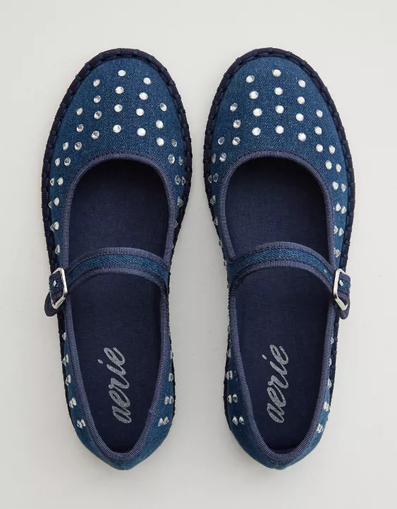 Aerie Denim Mary Jane Ballet Flats Blue
