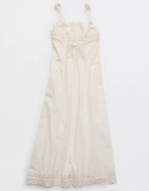 Aerie Embroidered Midaxi Dress Natural
