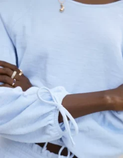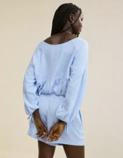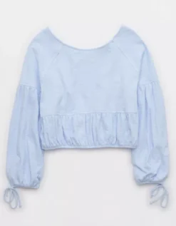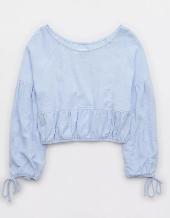 Aerie Endless Summer Cropped Sweatshirt Eyelet Blue