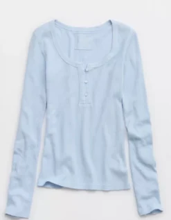Aerie Essential Henley Layering T-Shirt Eyelet Blue