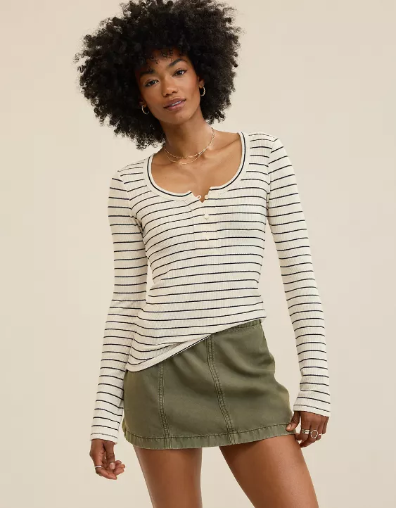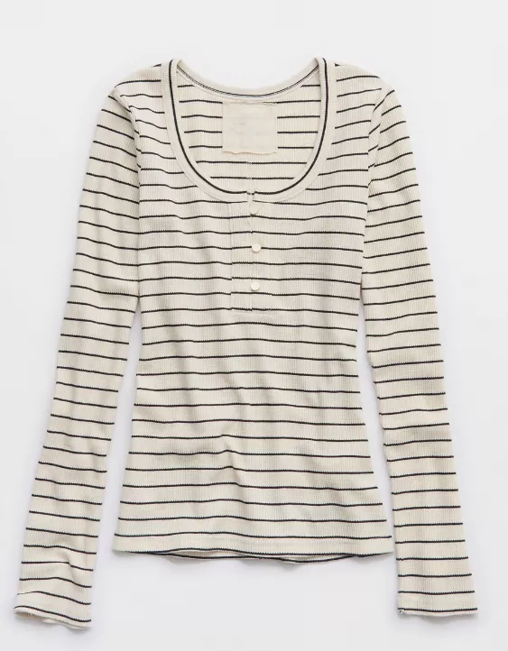 Aerie Essential Henley Layering T-Shirt Heather Frost