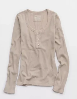 Aerie Essential Henley Layering T-Shirt Stone Harbor