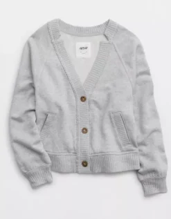 Aerie Fleece Cardigan Medium Heather Gray