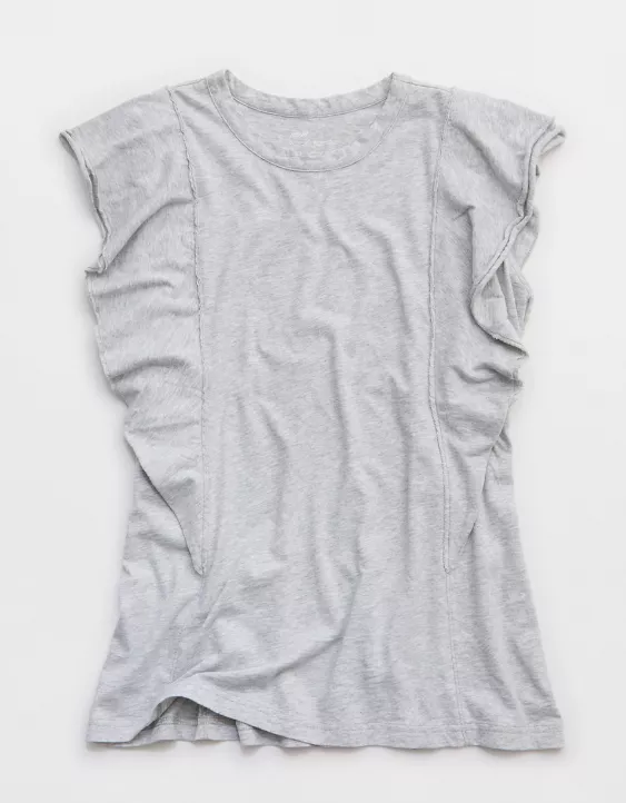 Aerie Flutter Sleeve T-Shirt Medium Heather Gray