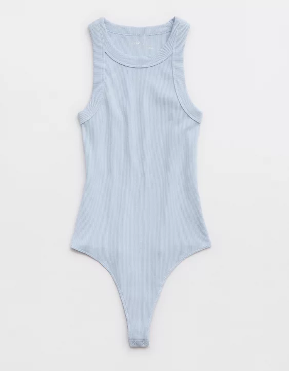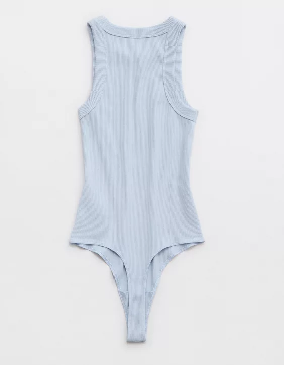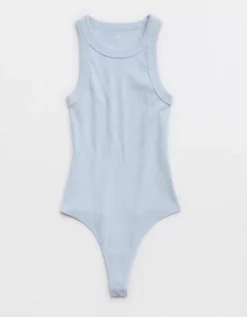 Aerie Free Spirit Ribbed Bodysuit Eyelet Blue