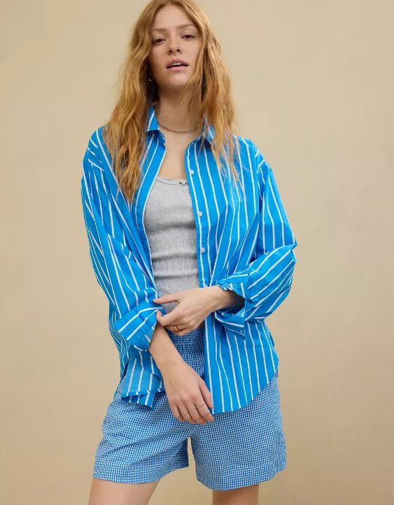 Aerie Good Day Button Down Shirt Ocean Aqua