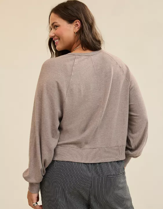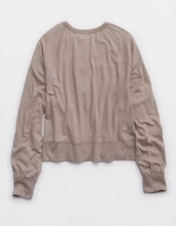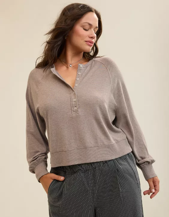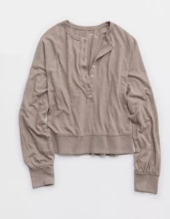 Aerie Happy Snit Henley T-Shirt Heathered Taupe