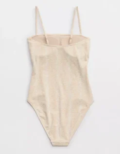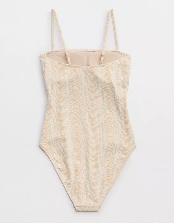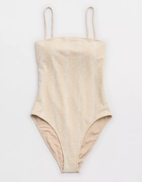 Aerie Jacquard Bandeau One Piece Swimsuit Sandalwood