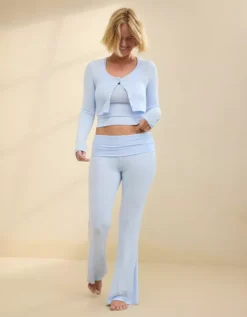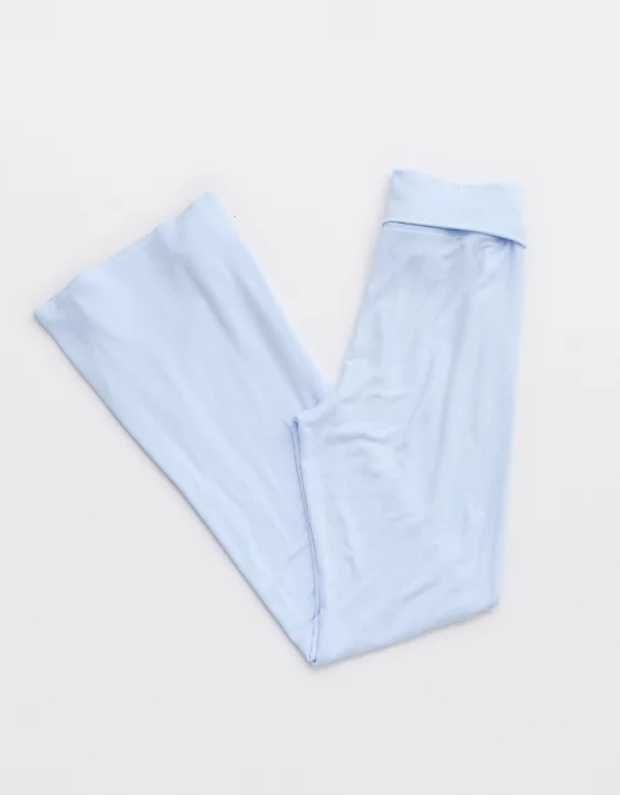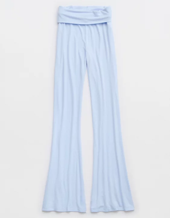 Aerie Let’s Bounce Foldover Bootcut PJ Pant Eyelet Blue