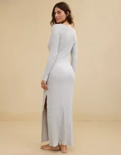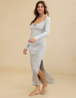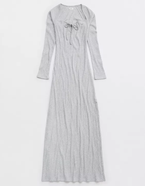 Aerie Long Sleeve Knit Tie Front Maxi Dress Medium Heather Gray