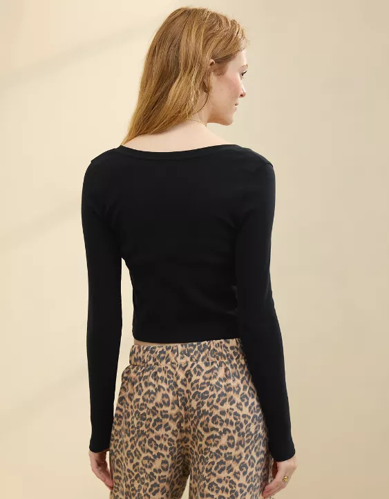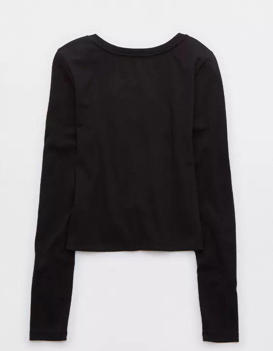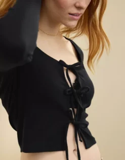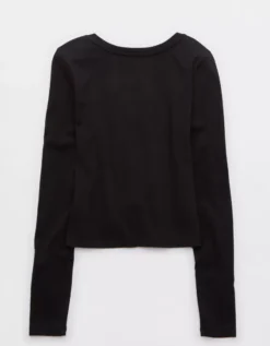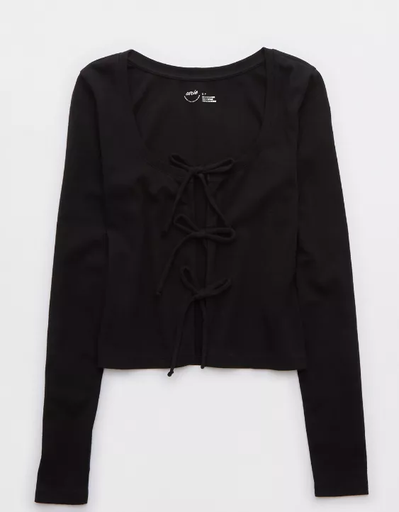 Aerie Long Sleeve Tie Front Cardigan True Black