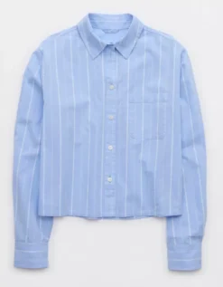 Aerie Off-Duty Poplin Pajama Shirt Ocean Sky