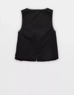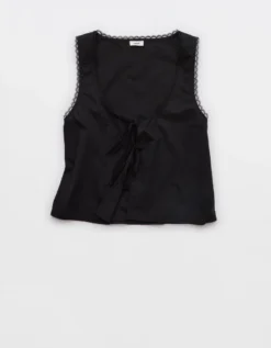 Aerie Off-Duty Poplin Tie Front Tank Top True Black