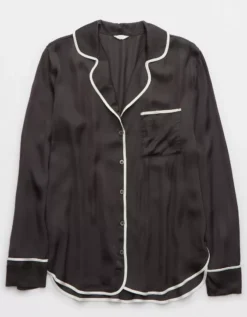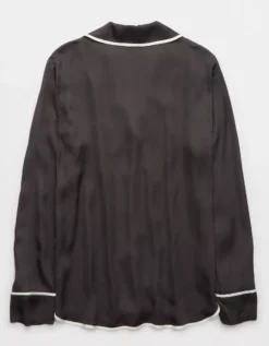 Aerie Off-Duty Satin Piping Shirt Smoked Gray