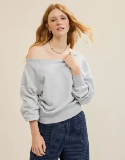 Aerie Off The Shoulder Sweatshirt Medium Heather Gray