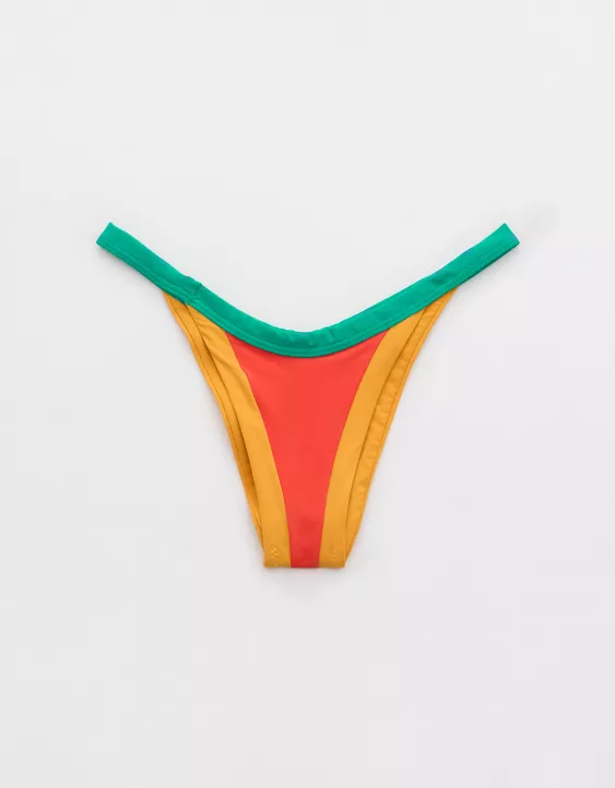 This bold and vibrant bikini bottom features a striking high-cut leg and a flattering high-waist design, perfectly sculpting and elongating your silhouette. With its seamless color-block detailing. It radiates a fun, tropical vibe. The back reveals a cheeky thong cut for minimal coverage, adding a sexy and confident touch. Ideal for making a statement at the beach or poolside, this bottom offers the perfect mix of style and comfort.