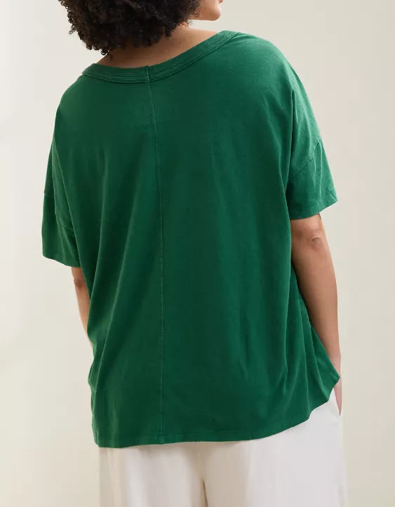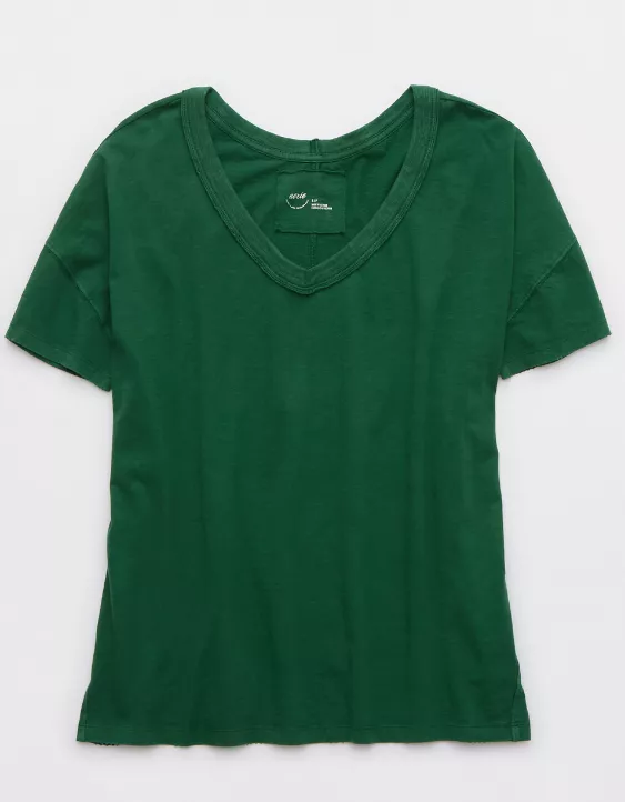 Aerie Oversized V-Neck Boyfriend T-Shirt Dark Algae