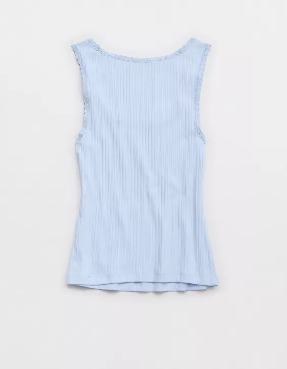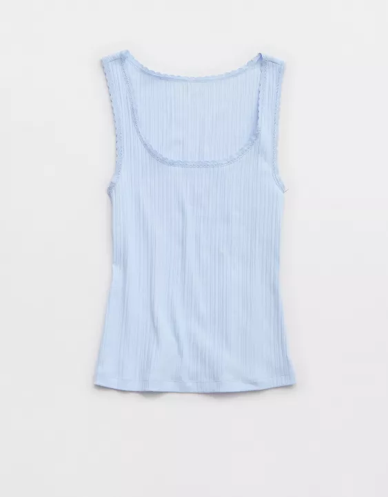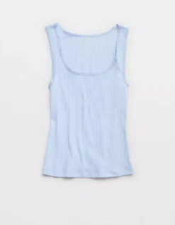 Aerie Ribbed Scoop Neck Tank Top Eyelet Blue