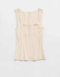 Aerie Ribbed Scoop Neck Tank Top Heather Frost