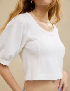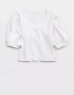 Aerie Seams Right Short Sleeve Sweatshirt White