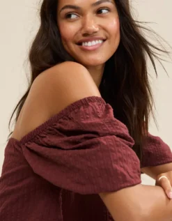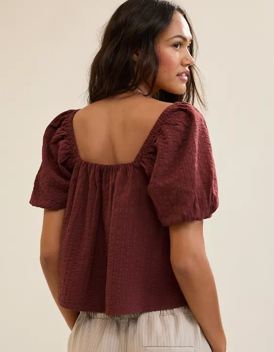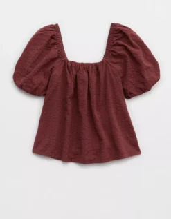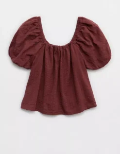 Aerie Seersucker Puff Sleeve Top Dark Rust