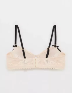 Aerie Show Off Feeling Femme Lace Plunge Push Up Bra Sandbar