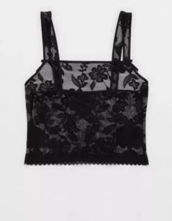 Aerie Show Off Feeling Femme Lace Tank Top True Black