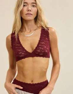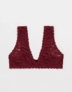 Aerie Show Off Flocked Vintage Lace Plunge Bralette Deep Cherry