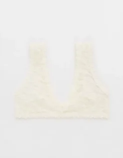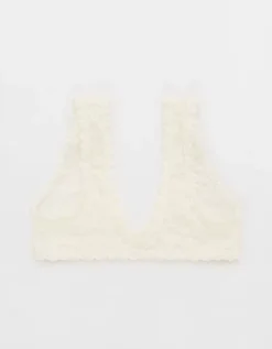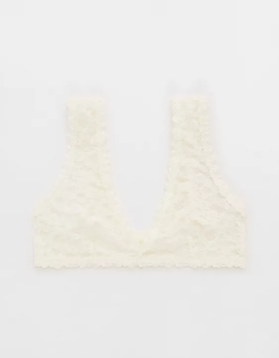 Aerie Show Off Flocked Vintage Lace Plunge Bralette Soft Muslin