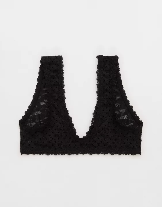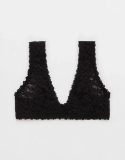 Aerie Show Off Flocked Vintage Lace Plunge Bralette True Black