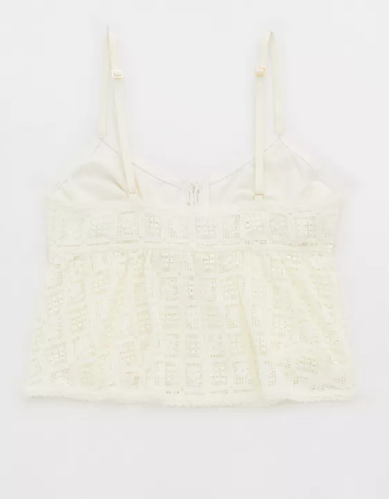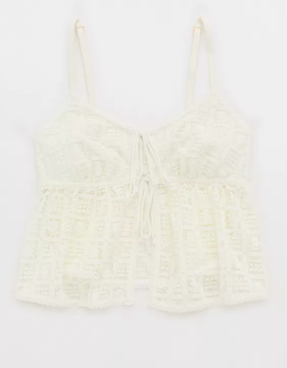 Aerie Show Off High Tide Lace Tie Front Tank Top Soft Muslin