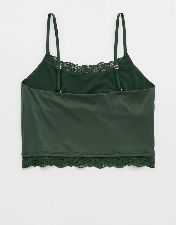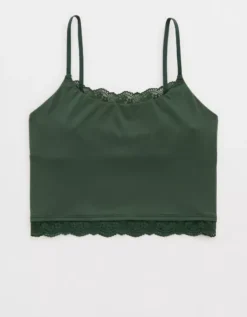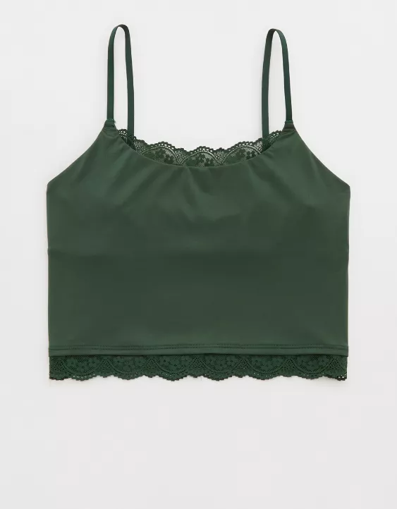 Aerie Show Off Shine Lace Tank Top Rugged Green