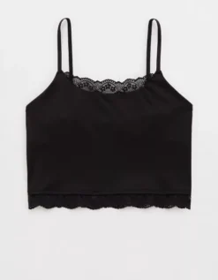 Aerie Show Off Shine Lace Tank Top True Black