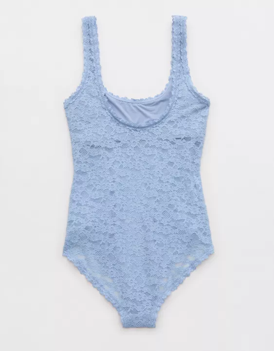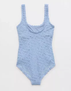 Aerie Show Off Vintage Lace Scoop Bodysuit Monaco Blue