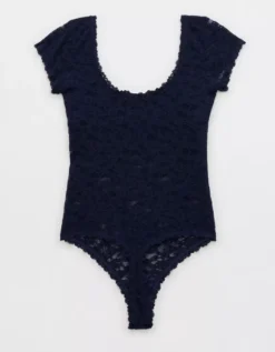 Aerie Show Off Vintage Lace Short Sleeve Bodysuit Navy