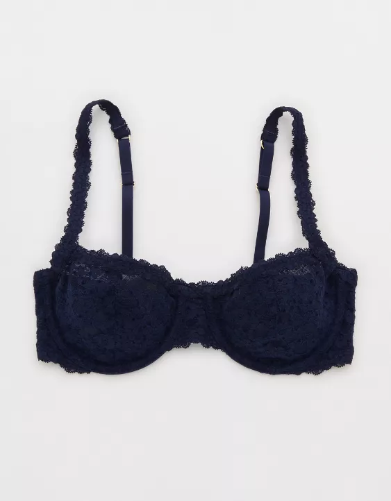 Aerie Show Off Vintage Lace Unlined Balconette Bra Navy