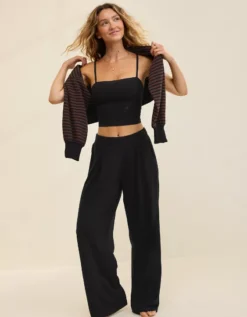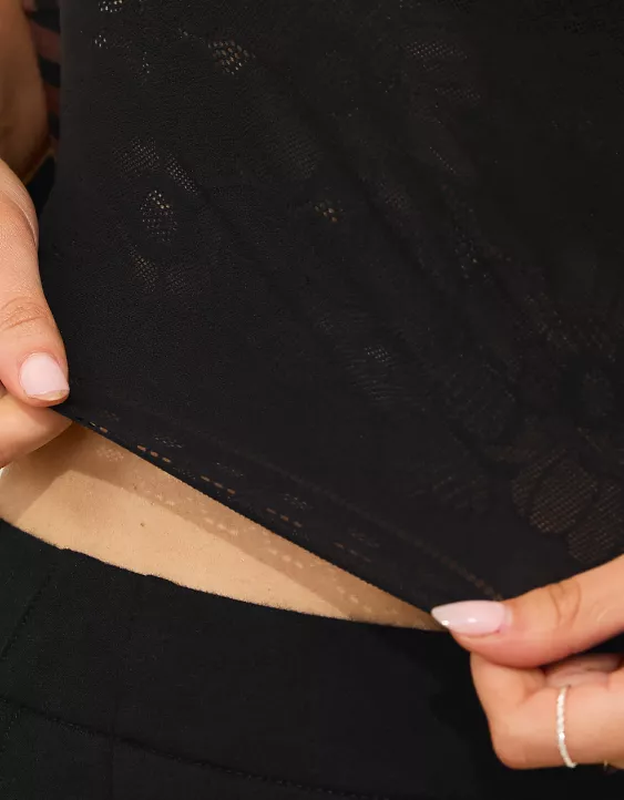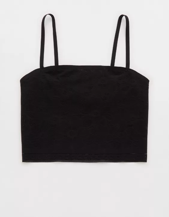 Aerie SMOOTHEZ Lace Tank Top True Black