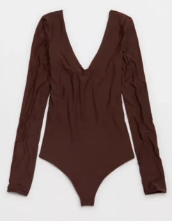 Aerie SMOOTHEZ Long Sleeve Plunge Bodysuit Canyon Sun
