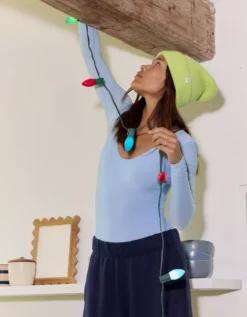 Aerie SMOOTHEZ Long Sleeve Plunge Bodysuit Monaco Blue