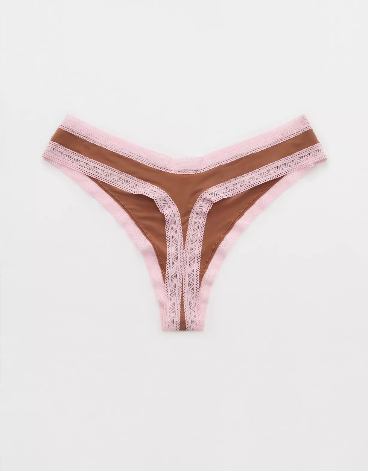 Aerie SMOOTHEZ Microfiber Lace Thong Underwear Horizon