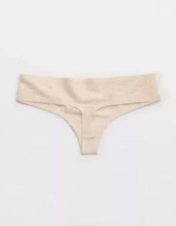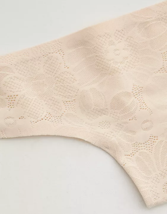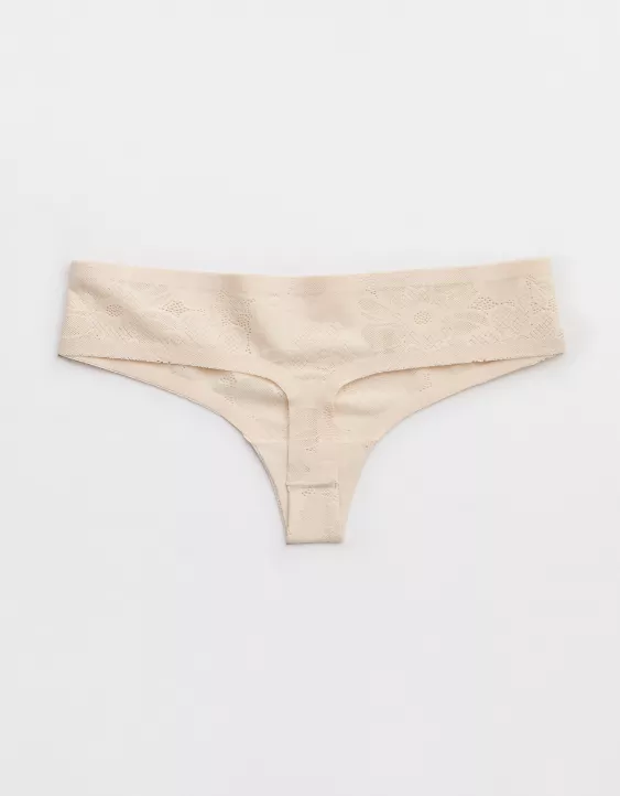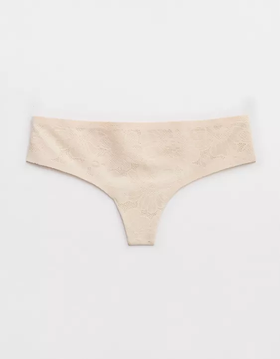 Aerie SMOOTHEZ No Show Lace Thong Underwear Sandbar