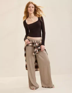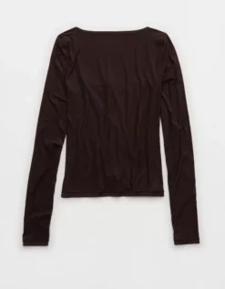 Aerie SMOOTHEZ Square Neck Long Sleeve T-Shirt Deep Earth