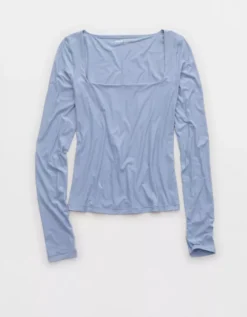Aerie SMOOTHEZ Square Neck Long Sleeve T-Shirt Monaco Blue